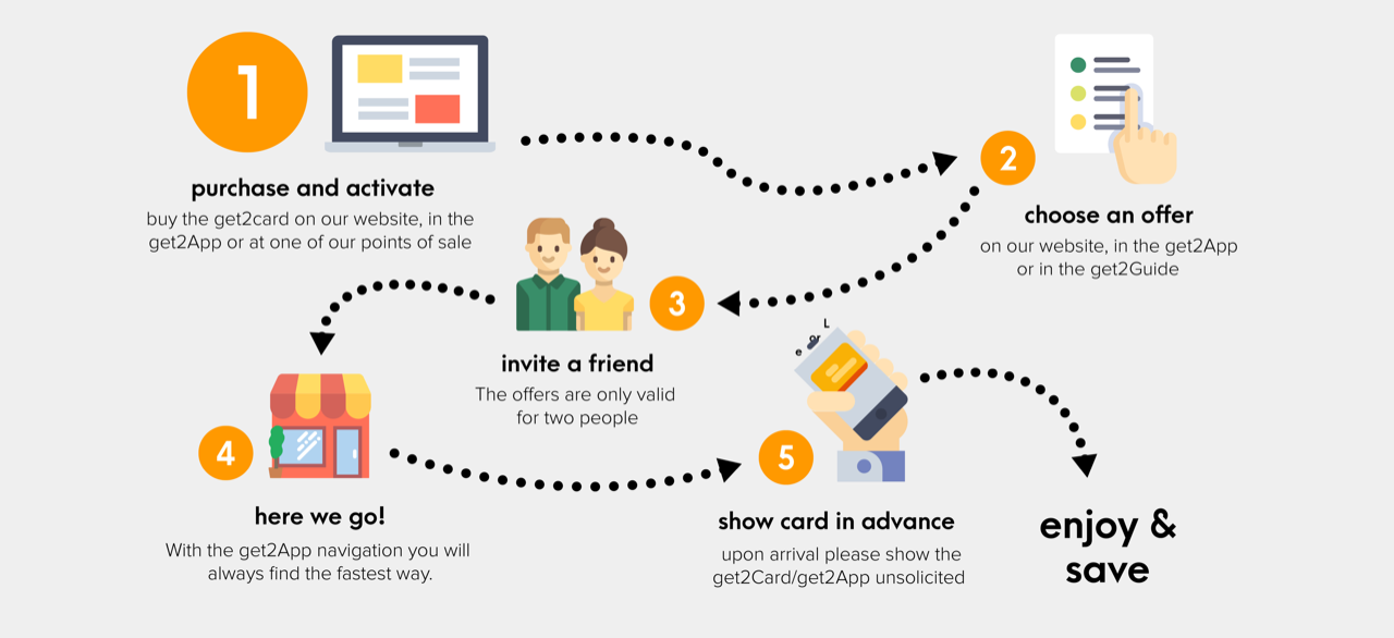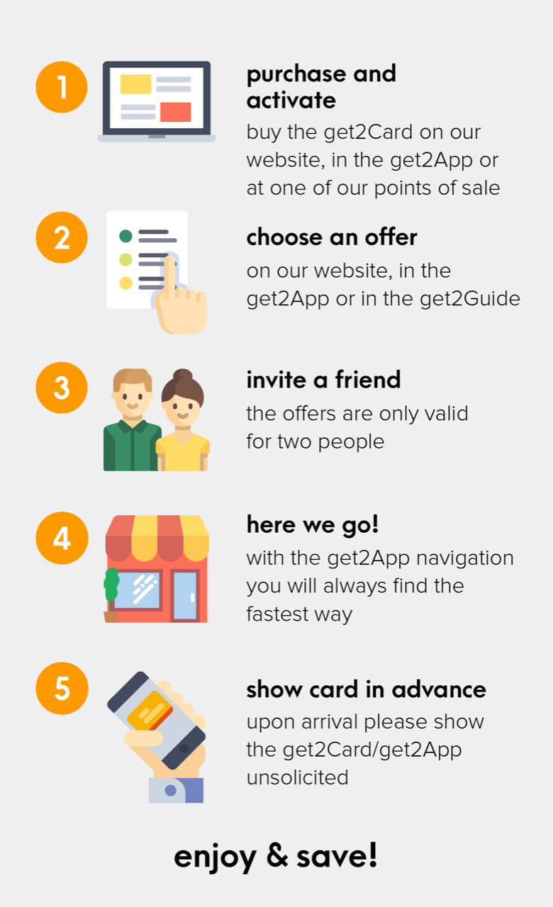 In order for you to benefit from our wide range of offers, you can use the offers as an get2Card/get2App member for a whole year, but only pay for membership once a year.
